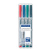 Lumocolor® non-permanent pen 316 - Box of 4This wallet contains one of each: red, blue, green and blackLine Width: 0.4mmAbout the Lumocolor® non-permanent pen 316:- Universal pen for use on almost all surfaces- Suitable for overhead projection- Can be wiped off film using a damp cloth- Water-soluble ink- Fast-drying- PP barrel and cap guarantee long service life- Airplane safe - automatic pressure equalisation prevents pen from leaking on board aircfraft- Superb colour brilliancyCode: 311WP4
